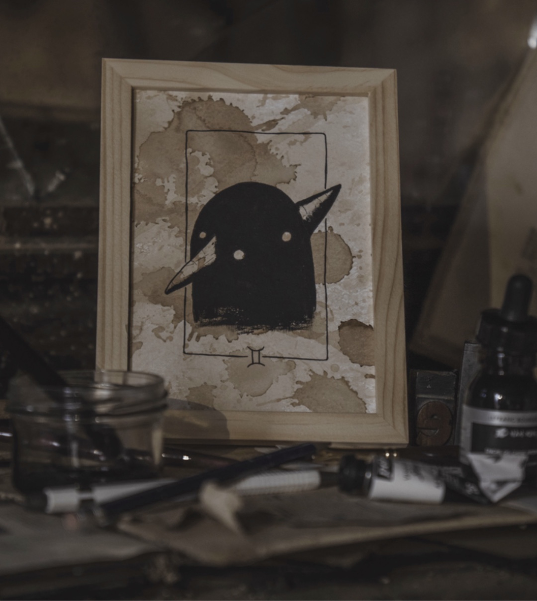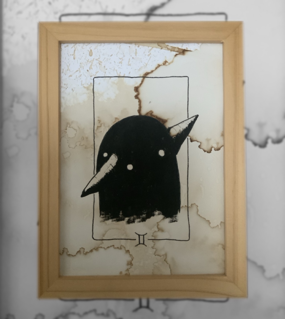 Exemplaire unique. Le fond est le fruit d’un processus aléatoire lors du séchage du café.